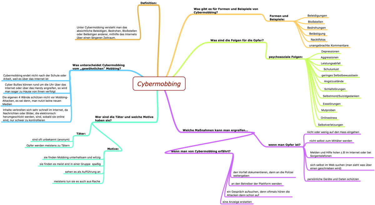 Im Rahmen des Projekts haben sich die SchülerInnen der 7c auf unterschiedliche Weise mit dem Thema Cybermobbing auseinandergesetzt. Im Deutschunterricht wurden Mindmaps erarbeitet, in den Workshops kurze Spielszenen und Standbilder entwickelt und Texte in Form eines kreativen Schreibauftrags verfasst. Drei ausgewählte Ergebnisse möchten wir hier präsentieren.