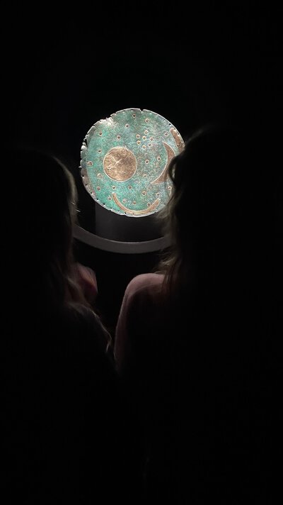Zum Abschluss gab es noch eine Vorschau auf die kommenden Geschichtsstunden: Die Himmelsscheibe von Nebra (ein Zeugnis aus der Bronzezeit) wurde intensiv begutachtet.