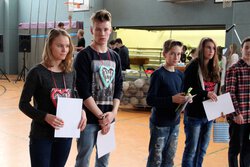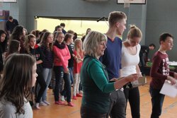 Mit der Siegerehrung am Donnerstag (18.12.) in unserer Turnhalle fand der 15. Lichterlauf seinen stimmungsvollen Abschluss. 222 Läufer/innen erlebten ein buntes Programm, welches zwei Stunden füllte. Ob Tanz- oder Turneinlage, Gesang oder Inlinerarobic, alle Akteure umrahmten die Urkunden- und Preisvergabe mit ganzem Einsatz.
