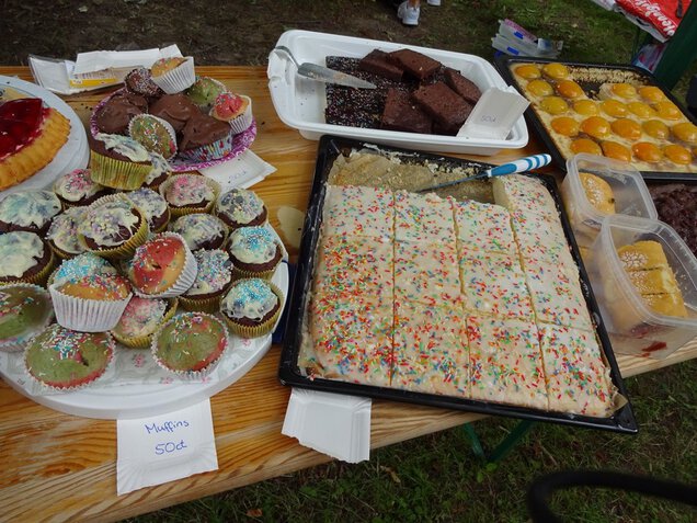 Unser Kuchenbuffet war zeitweise sehr voll. Da hatte eine Mutti vom SFV die umsatzbringende Idee, die vielen Muffins bzw. schon Cupcakes im gesamten Park an die Kunden zu bringen. Tatsächlich waren die Schüler/Innen echt zu begeistern und setzten diese Idee sofort grandios um.