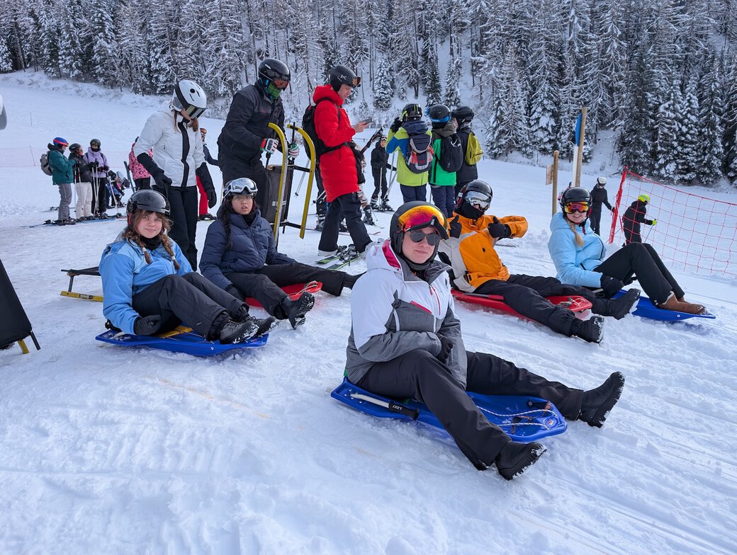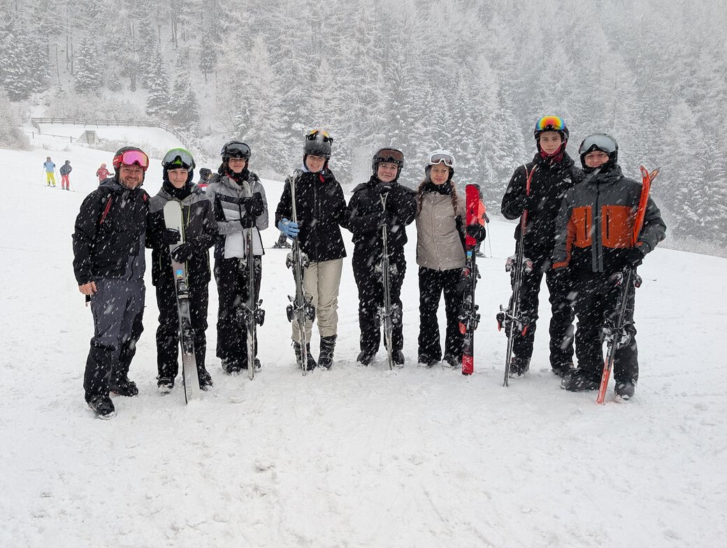 Am Morgen des 24.01.26 machten sich 22 Schülerinnen und Schüler gemeinsam mit vier Betreuern im Rahmen des Oberstufenkurses Sport auf den Weg nach Raas in Südtirol. Bei bester Laune startete die Gruppe in das winterliche Abenteuer. Nach rund elf Stunden Fahrt erreichten wir am Abend unser Ziel. Nach einem leckeren Abendbrot wurden die Zimmer bezogen – die Vorfreude und Spannung auf die kommenden Tage waren deutlich spürbar.