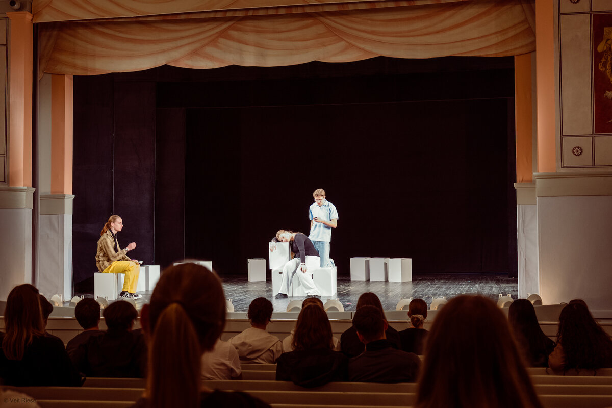 Auch die beiden Schülervorstellungen am 27.05.25 überzeugten. Gebannt verfolgte das Publikum der Klassenstufe 6 und 7 dem 40-minütigen Geschehen auf der Bühne. Wie im Spiegel der eigenen Erfahrungen erkannte sich jeder im Publikum wieder: jeder sah, fühlte und wusste sich in bestimmten Situationen. - Und sofort weitete sich der reflektierende Blick auch auf die anderen, der Innehalten und Achtsamkeit aufkeimen ließ.