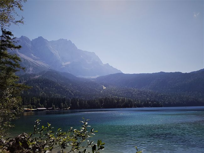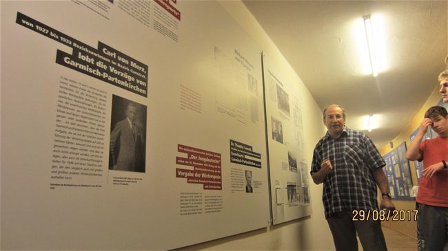 Am zweiten Tag wurde den Schülern eine kleine Verschnaufpause vor der großen Bergbesteigung gegönnt. Eine Ausstellung informierte über die Olympischen Winterspiele von 1936. Die Judenverfolgung warf ihre Schatten voraus, aber auch die sportlichen Livebilder faszinierten. Nach diesem Stopp fuhr die Gemeinschaft zum nächsten Ziel, dem Eibsee am Rande Garmisch Partenkirchens. Ein strahlend blauer, tiefklarer und reiner See, dessen Besuch mehr als nur empfehlenswert ist, beflügelte unsere Beine auf einem hübschen Rundweg entlang des Ufers. Fotos und Impressionen wurden gesammelt, welche jedoch kaum die Schönheit des Wassers und des Anblicks nacherzählen können. Abgeschlossen wurde diese Tagesexpedition mit einem ersehnten Bad in diesem Gewässer, sowie einer jahreszeitlich bedingten letzten Bräunung.