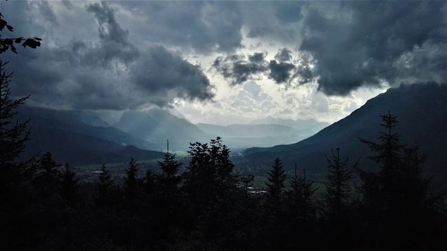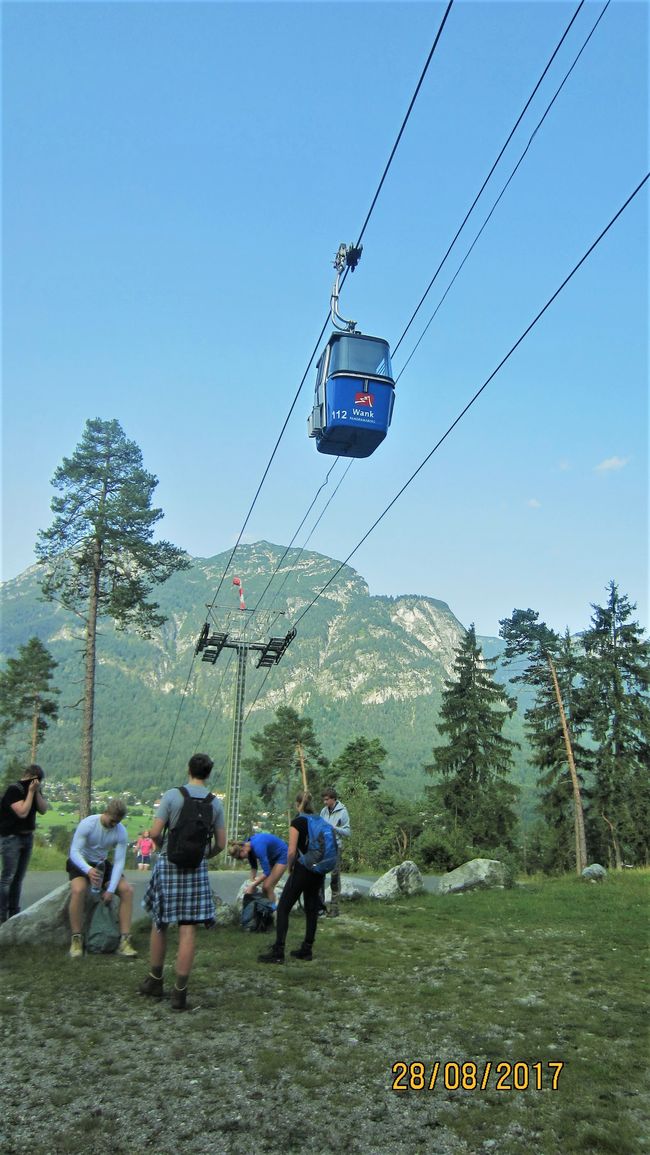 Am frühen Morgen des nächsten Tages sollte die Einwanderungsphase beginnen, d.h. müde Muskeln aufgewärmt und kalte Glieder eingelaufen werden. Das Ziel der heutigen Wanderung war der Wank mit ca. 1800 Höhenmetern. Nach einer kurzen Busfahrt zur Talstation stieg die Gruppe die erste Etappe empor und merkte bereits nach wenigen Minuten, welche Auswirkungen der ansonsten eher ruhige und verhältnismäßig entspannte Alltag mit sich brachte, erste Schweißtropfen zeichneten sich auf Stirn und Rücken der Schüler ab. Gerade der eher praktisch Gekleidete erkannte in diesem Moment, dass die Kleiderwahl sportlich atmungsaktiv hätte sein müssen, und v.a. kurz. Denn trotz einiger Regenhuschen zwischendurch und einem beginnenden Gewitter am Ende des Tages lagen die Temperaturen im Tal fast immer über 25° C.
