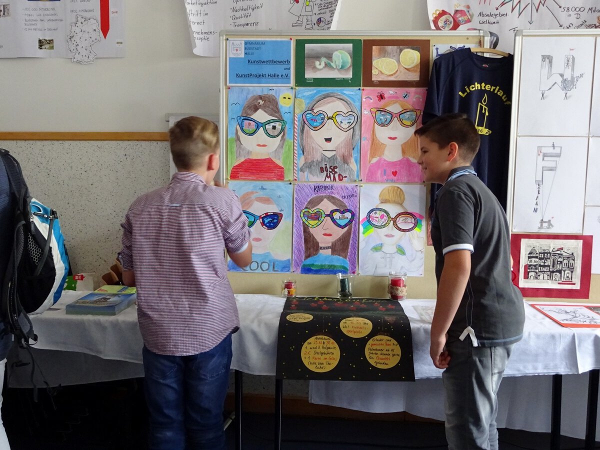 Diesmal gab es durchweg ein sehr positives Feedback der Besucher zu den vielen dargestellten Facetten des Schulalltags am Gymnasium Südstadt – somit war nach Eindruck der Gäste unser Raum einer der am interessantesten gestalteten Räume zur Schulmesse. Wir können darauf hoffen, dass der „Funke“ auf die zukünftigen Schüler sowie deren Eltern übergesprungen ist und eine rege Anwahl des Gymnasiums Südstadt als fortführende Schule ab der 5. Klasse im kommenden Jahr 2018 erfolgt!