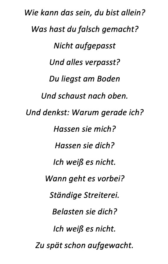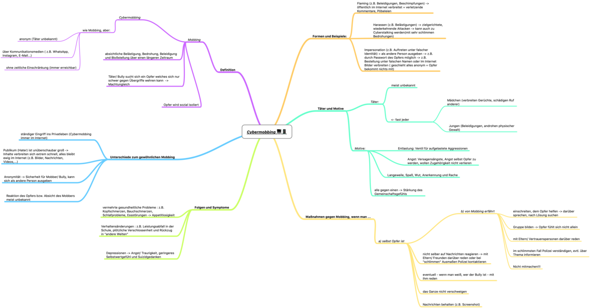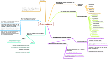 Im Rahmen des Projekts haben sich die SchülerInnen der 7c auf unterschiedliche Weise mit dem Thema Cybermobbing auseinandergesetzt. Im Deutschunterricht wurden Mindmaps erarbeitet, in den Workshops kurze Spielszenen und Standbilder entwickelt und Texte in Form eines kreativen Schreibauftrags verfasst. Drei ausgewählte Ergebnisse möchten wir hier präsentieren.