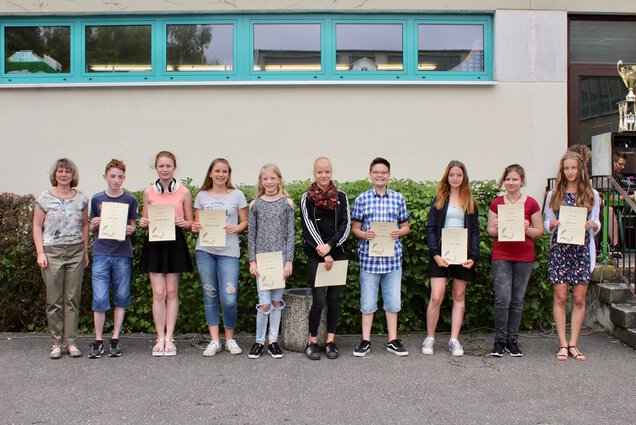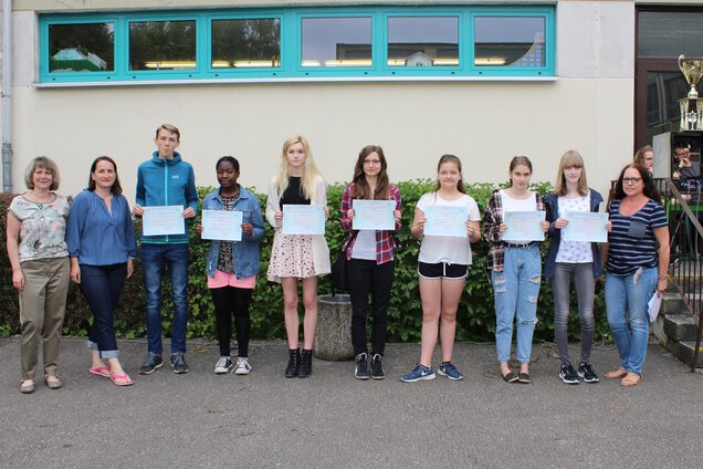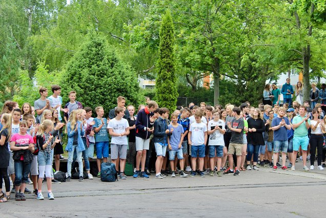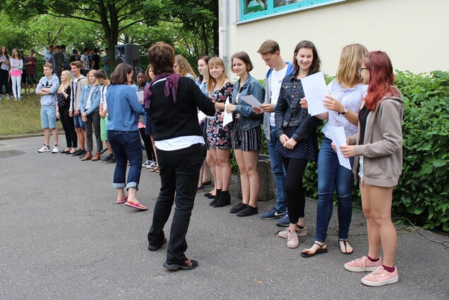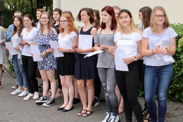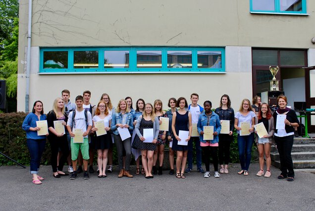 Unmittelbar vor der Zeugnisausgabe wurden viele Schülerinnen und Schüler ausgezeichnet: Schul- und Fachdiplomanden, Sportler, Erasmus-Plus-Teilnehmer, DELF-Diplomanden und Künstler.