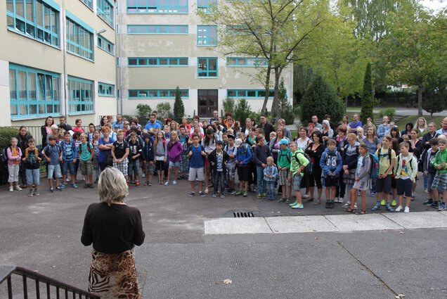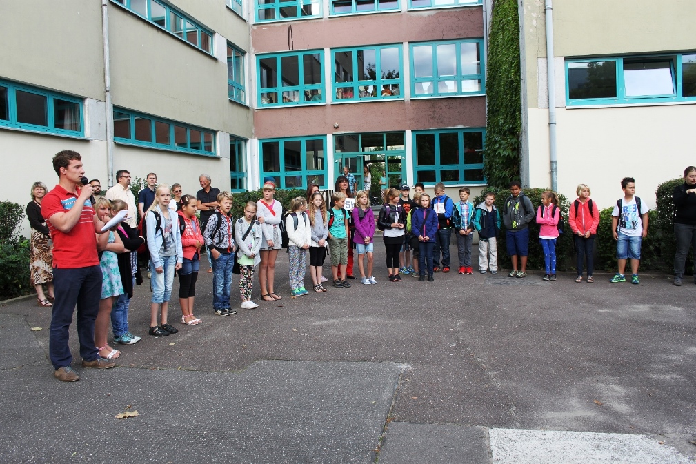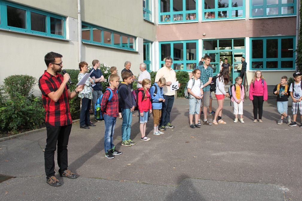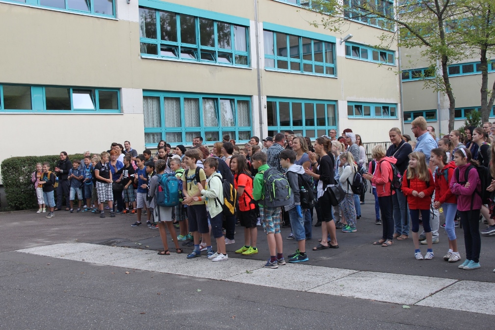 Am Donnerstag, dem ersten Schultag nach den Sommerferien, begrüßten die Schulleiterin Frau Kober, weitere Schulleitungsmitglieder und alle acht Klassenleiter die vier neuen 5. Klassen. Ja, acht, denn jede fünfte Klassen wird von zwei Klassenleitern betreut. Es folgen zwei Einführungstage, damit alle Schüler ihre neue Schule kennen lernen können, bevor es am Montag mit dem regulären Unterricht weitergeht.
