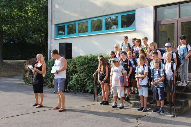 Am ersten Tag eines Schuljahres heißen wir immer unsere neuen Schüler und Schülerinnen der 5. Klassen willkommen. So auch heute. Die Vorfreude auf die neue Situation ist den meisten anzusehen. Also: einen guten Einstieg und viel Erfolg beim Lernen!