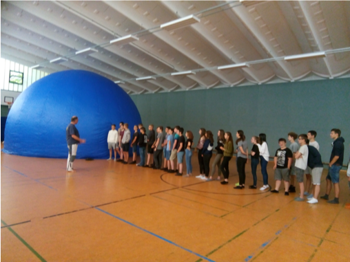 Am letzten Mittwoch den 13.06.2018 bekamen wir Besuch von Herrn Rode, dem Gründer des Schulplanetariums. Hierbei wurden den Schülerinnen und Schülern der 9. Klassen die Weiten unseres Alls veranschaulicht ohne Lichtjahre reisen zu müssen. Da es in Halle zum jetzigen Zeitpunkt leider nicht möglich ist ein Planetarium zu besuchen, entstand die Idee ein solches Projekt an unserer Schule zu etablieren.