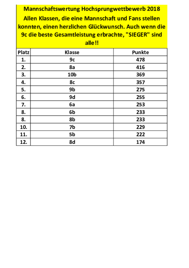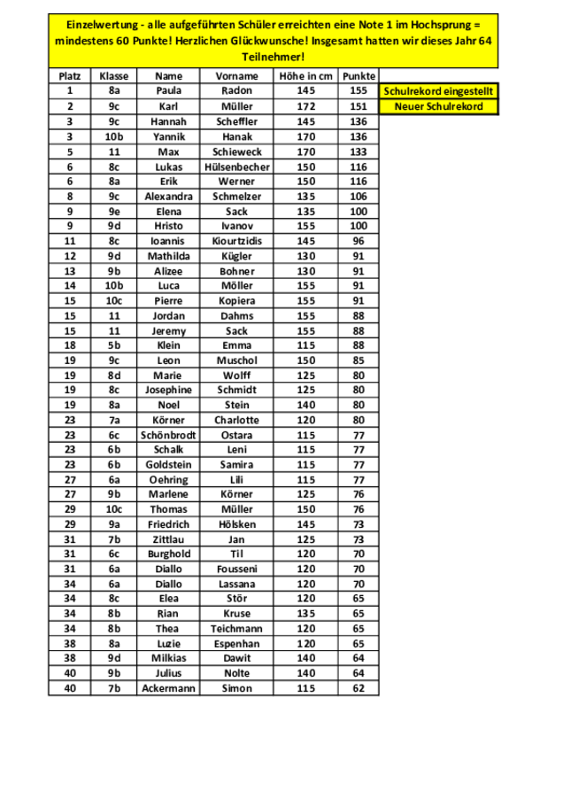 Ergebnisse Hochsprungwettbewerb