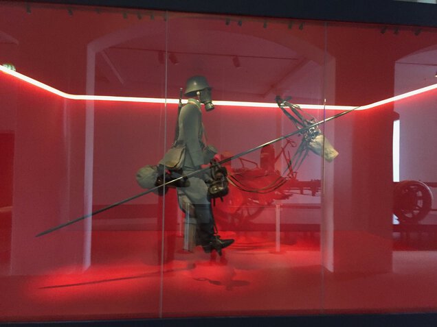 Das und vieles mehr erfuhren die Schüler in ihren Rundgängen zu den Themen „Militär und Technologie“, „Tiere im Militär“ und „Leiden am Krieg“, v.a. im Ersten Weltkrieg. Wir betrachteten Exponate von Verwundung und Tod und wir atmeten den Verwesungsgeruch der Kriegsgräberfelder ein ...