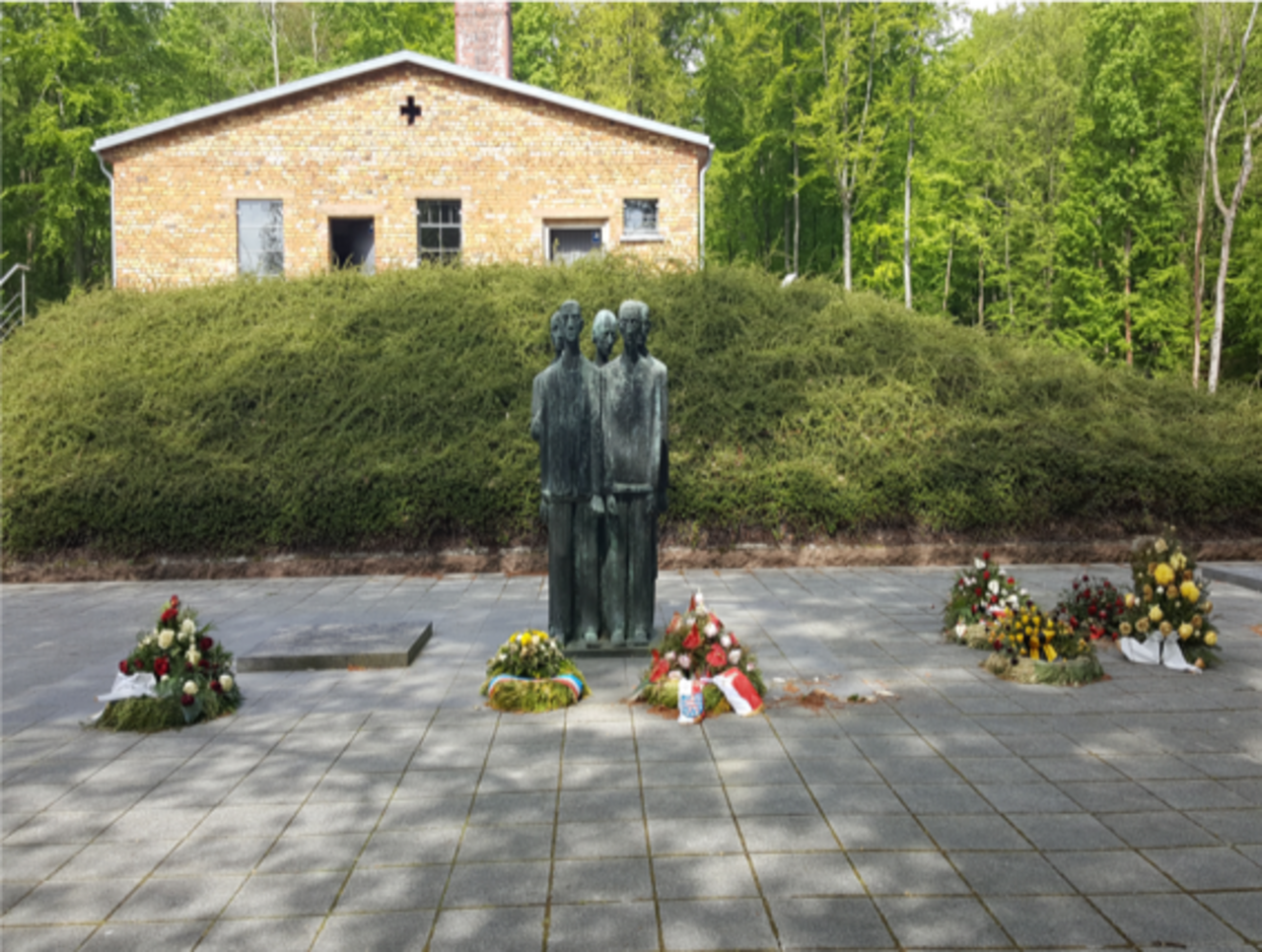 Nach einer kurzen Pause haben wir uns dann den Appellplatz angesehen. Es war ein bedrückendes Gefühl diesen Platz zu sehen, wo mehrmals am Tag tausende Häftlinge oft stundenlang bei jedem Wetter stehen mussten. Nachdem wir den Appellplatz verlassen und einige traurige Geschichten zu dem nebenliegenden Löschteich gehört haben, ging es einige Stufen hinauf zum Krematorium, dem Ort, wo Leichen des ehemaligen Konzentrationslagers verbrannt worden sind. Das Krematorium selbst besteht aus zwei Räumen. Im ersten Raum stehen noch zwei Öfen. Davor befindet sich heute eine Bronzeplastik und daneben eine Tafel mit allen Ländernamen von Menschen, die im Konzentrationslager leben mussten.