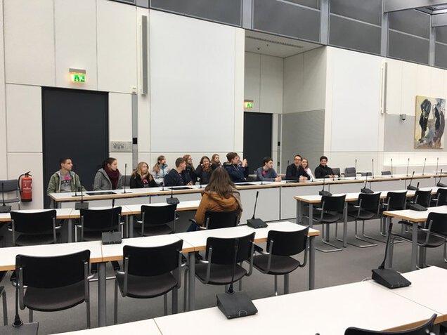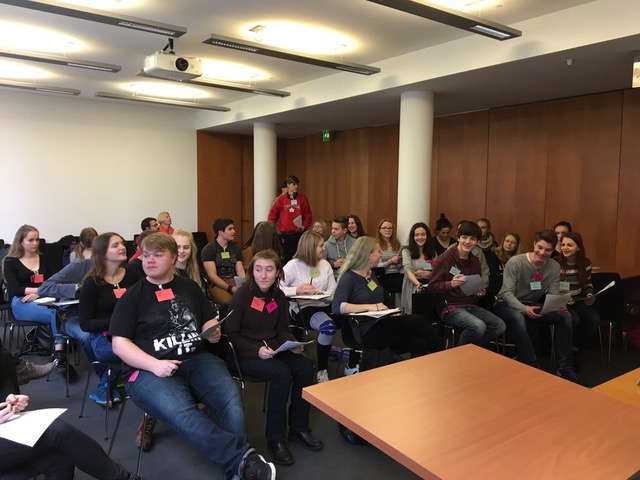 Im Anschluss gab man uns eine Einführung über den Ablauf des nun folgenden Planspiels. Unsere Aufgabe war es, in die Rollen von fiktiven Abgeordneten des Bundestages zu schlüpfen und den Weg eines Gesetzes – von der Gesetzesvorlage über die Lesungen, die Änderungsvorschläge durch die Ausschüsse und Fraktionssitzungen - zu begleiten. Nach den ersten Fraktionssitzungen und der Wahl der Bundestagspräsidentin standen verschiedene Ausschusssitzungen an, in denen sich die Mitglieder mit dem vorliegenden Gesetzentwurf des Bundesrates beschäftigten und Änderungsvorschläge einbrachten. Der uns vorliegende Gesetzesentwurf besagte, dass sich ältere Menschen regelmäßig einer Überprüfung ihrer Fahrerlaubnis unterziehen müssen, um ihren Führerschein nicht zu verlieren. Nach weiteren Fraktionssitzungen der Parteien, in denen kontrovers über das Gesetz diskutiert und sich die jeweilige Position zu diesem Gesetz erarbeitet wurde, folgte die abschließende Sitzung des Bundestages mit der Schlussabstimmung über den geänderten Gesetzentwurf.