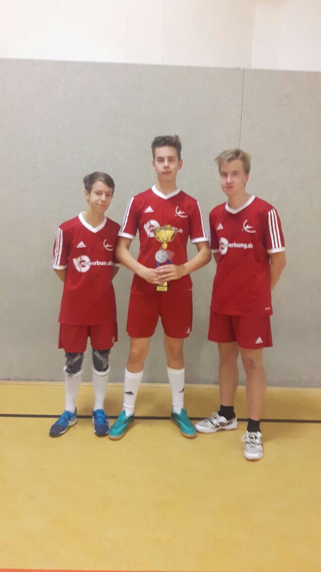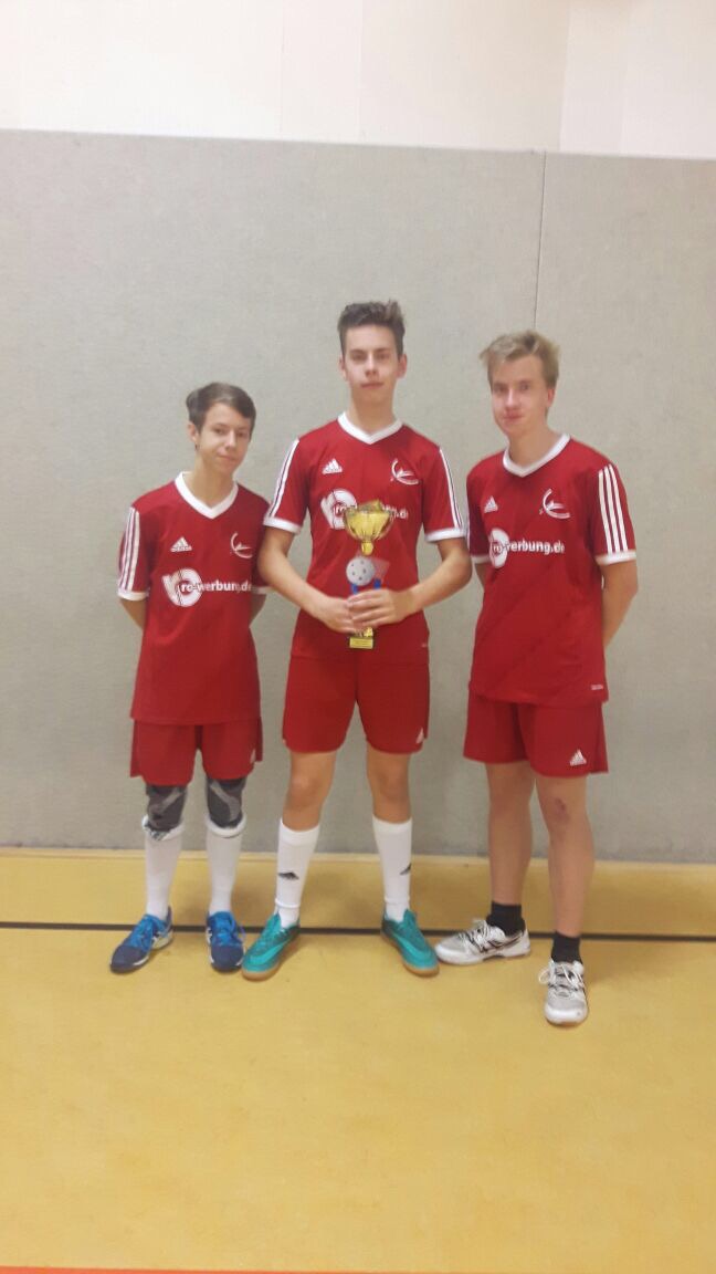 Während ein Teil der Schulmannschaft unsere Schule am 19.11.2017 beim Tag der offenen Tür tatkräftig unterstützte, repräsentierten Anton Ebensing, Lukas Nowack und Hannes Wiedemann das Gymnasium Südstadt zeitgleich in der Sporthalle Heinrich-Pera-Straße. Zum letzten Mal in diesem Kalenderjahr traten hallesche Schulmannschaften im Turniermodus gegeneinander an. Souverän meisterten die Jungs alle Spiele siegreich und so konnte man mit voller Punkte-Ausbeute das Turnier gewinnen.
