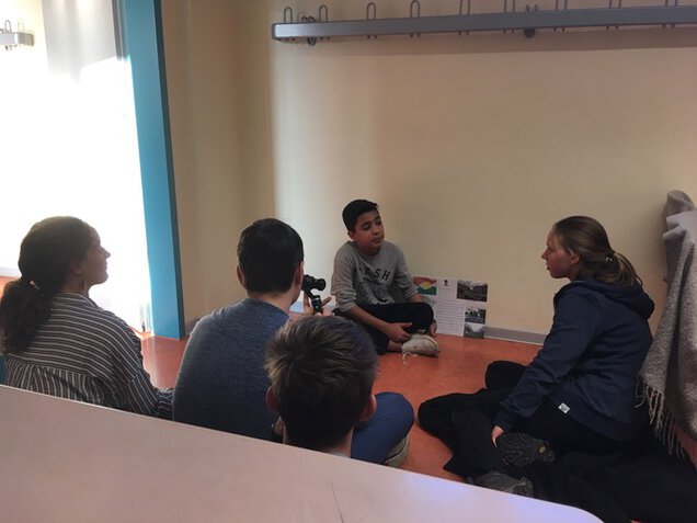 Am vergangen Freitag, den 23.11.2018, hatten die jungen Forscher die besondere Gelegenheit einen Schüler unserer Schule zu interviewen. Jan, der die 5b unserer Schule besucht, stellte sich als Zeitzeuge den Interviewfragen der Schüler. Im Rahmenden dieses „Oral History“-Zugangs möchten die SchülerInnen mehr über das Thema Flucht in der Gegenwart in Erfahrung bringen. Jan, der in Aleppo geboren wurde, konnte eindrucksvoll und gleichsam eloquent aus seiner Perspektive über Flucht, Migration und Integration berichten. Für seine Offenheit und sein Vertrauen möchte ich mich, im Namen der Projektgruppe, ganz herzlich bedanken. Mit seinen Schilderungen hat er uns einen tiefgehenden, sehr persönlichen Einblick in die Thematik gewährt. Der Austausch mit ihm ist für uns – auch unabhängig vom Wettbewerb – eine große Bereicherung!