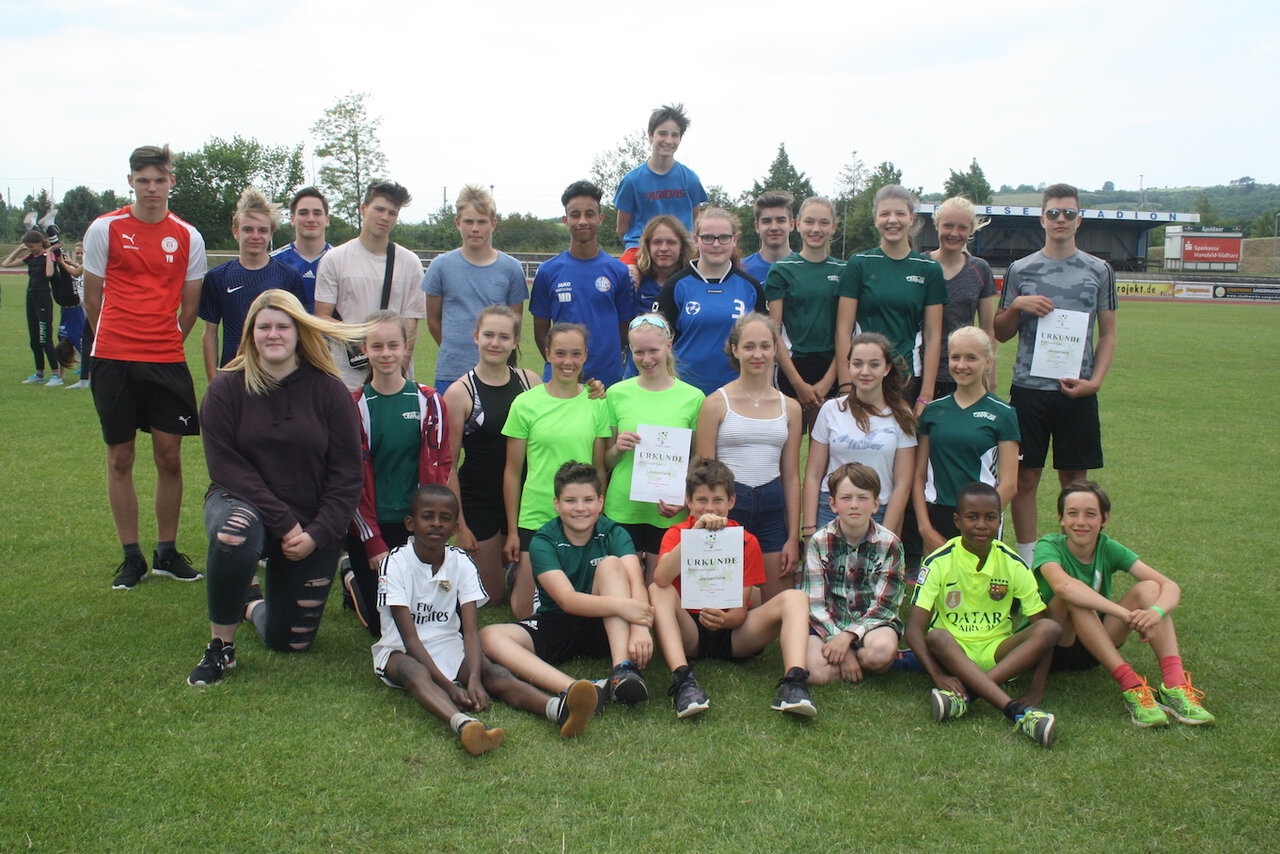 Sowohl die Mädchen, als auch die Jungen der Wettkampfklasse 3 (7/8/9.Kl.) gingen als Sieger aus dem Regionalfinale in Sangerhausen hervor. Bei schwierigen Bedingungen, besonders der Wind beeinträchtigte die Springer und Mittelstreckenläufer, siegten beide Teams souverän mit über 300 Punkten Vorsprung vor den Zweitplatzierten und erkämpften damit den Einzug ins Landesfinale. Herausragende Leistungen erzielten Marlene Körner (Kl.8) mit 4,98m im Weitsprung und 9,96s über 75m. Elena Sack (Kl.9) sprang 1,48m hoch und 4,82m weit. Die superschnelle Mädchenstaffel lief in der Besetzung Körner/ Espenhahn/Sack/Bohne 38,73s und war damit nur unwesentlich langsamer als unsere Jungenstaffel in 38,02s.