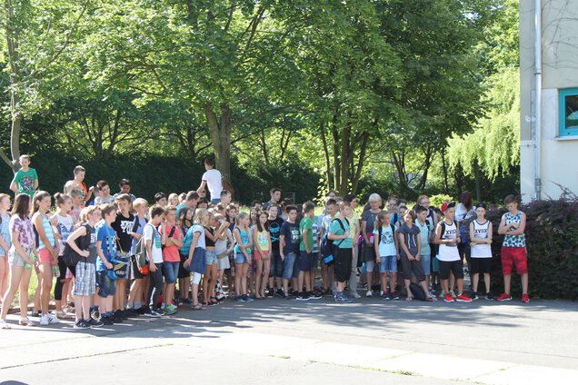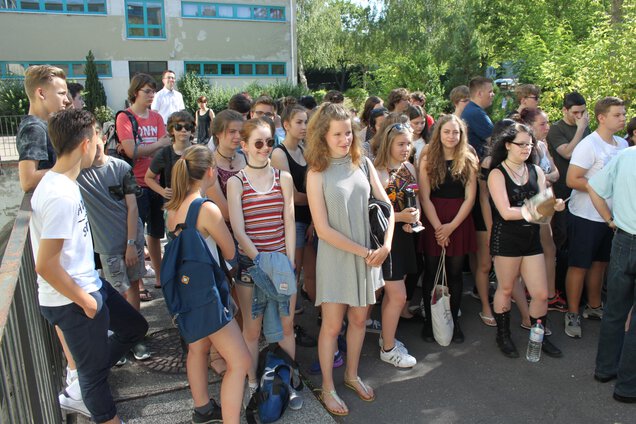 Um 9:30 Uhr war es zwar bereits unerträglich heiß und die Schattenplätze auf dem Schulhof waren schnell besetzt, aber der Anlass war es wert: Die gesamte Schule versammelte sich ein letztes Mal vor den Sommerferien, um die besten Schüler in verschiedenen "Kategorien" zu ehren. Da gibt es einerseits die Jahrgangsbesten und fachlich interessantesten Schüler, unsere Schuldiplomanden. Anderseits Teilnehmer an unterschiedlichen Wettbewerben ("Jugend forscht", Mathematik-Olympiade), tolle Sportler und Französischschüler, die die DELF-Prüfung vom 28.Mai erfolgreich bestanden haben.