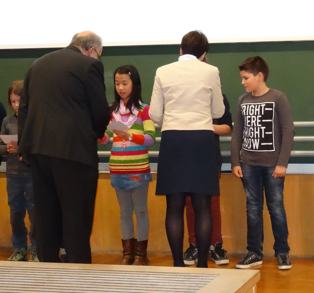 Luca (rechts im Bild) bei der Siegerehrung am Samstagnachmittag im großen Hörsaal der Physik der Otto-von-Guericke-Universität Magdeburg. Die Siegerehrung wurde von der Staatssekretärin Edwina Koch - Kupfer vom Bildungsministerium Sachsen - Anhalt und vom Dekan der Fakultät für Mathematik der Otto - von - Guericke - Universität Magdeburg Professor Hans - Christoph Grunau vorgenommen.