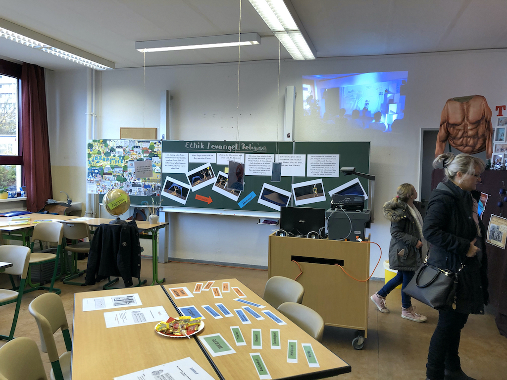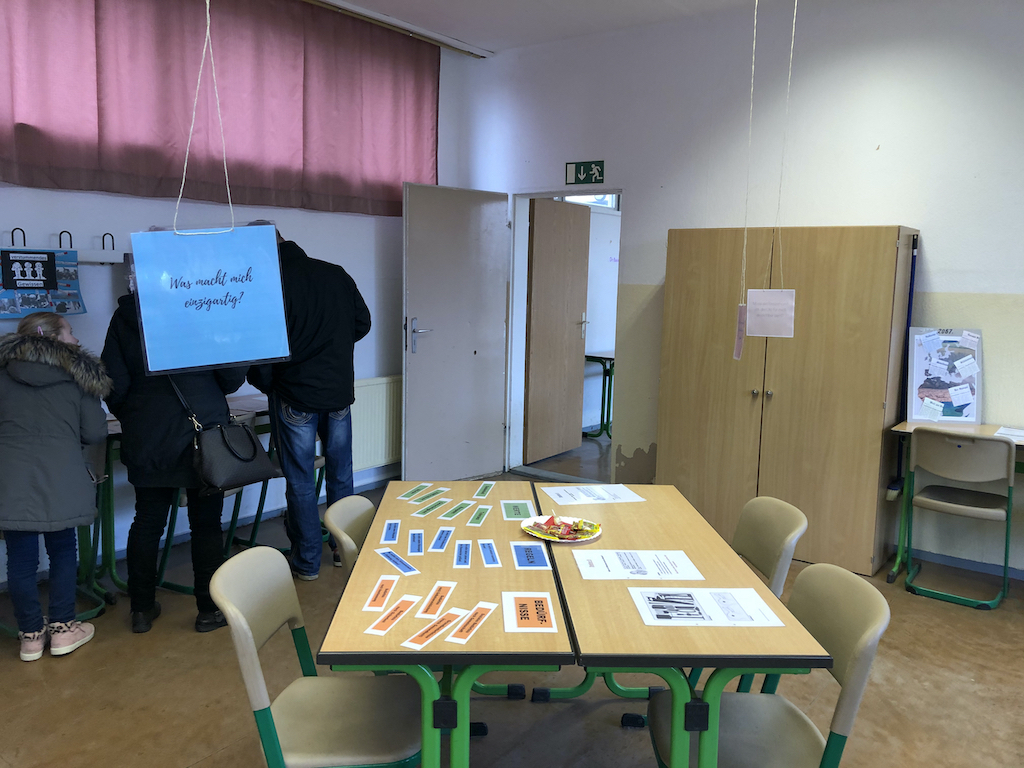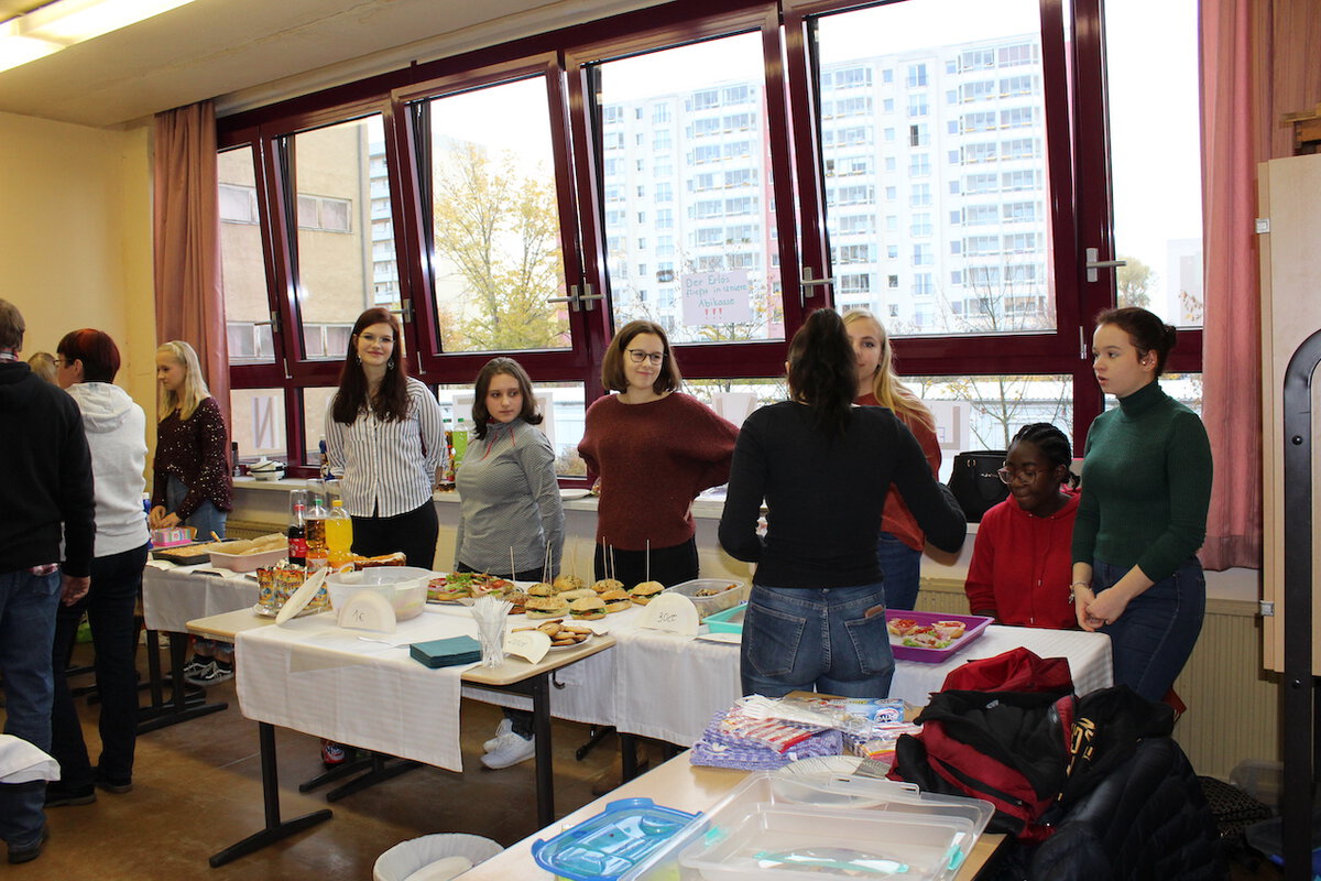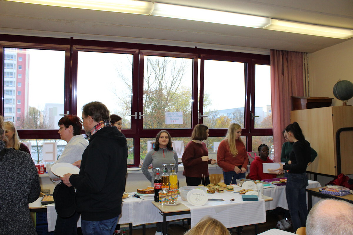Am Sonnabend, dem 16.11.2019 fand der Tag der offenen Tür zum ersten Mal an unserem aktuellen Ausweichstandort in der Rigaer Straße statt. Die bunt gestalteten Räume waren gut besucht. Für unsere kleinen Gäste und ihre Eltern gab es viele Informationen, Anregungen, verschiedene Leckereien, Schnupperunterricht und ein Quiz mit vielen Preisen. Der Schulförderverein, das Schülercafé, der Lichterlauf, die Kunst und alle anderen Fächer stellten sich vor. Auch "Ehemalige" ließen sich sehen, wie immer, wunderbar! Viele Schülerinnen und Schüler unterstützten ihre Lehrer in den Unterrichtsräumen. Vielen Dank an alle Beteiligten!