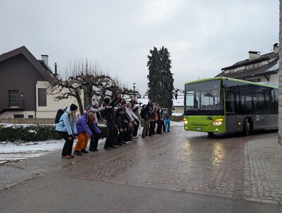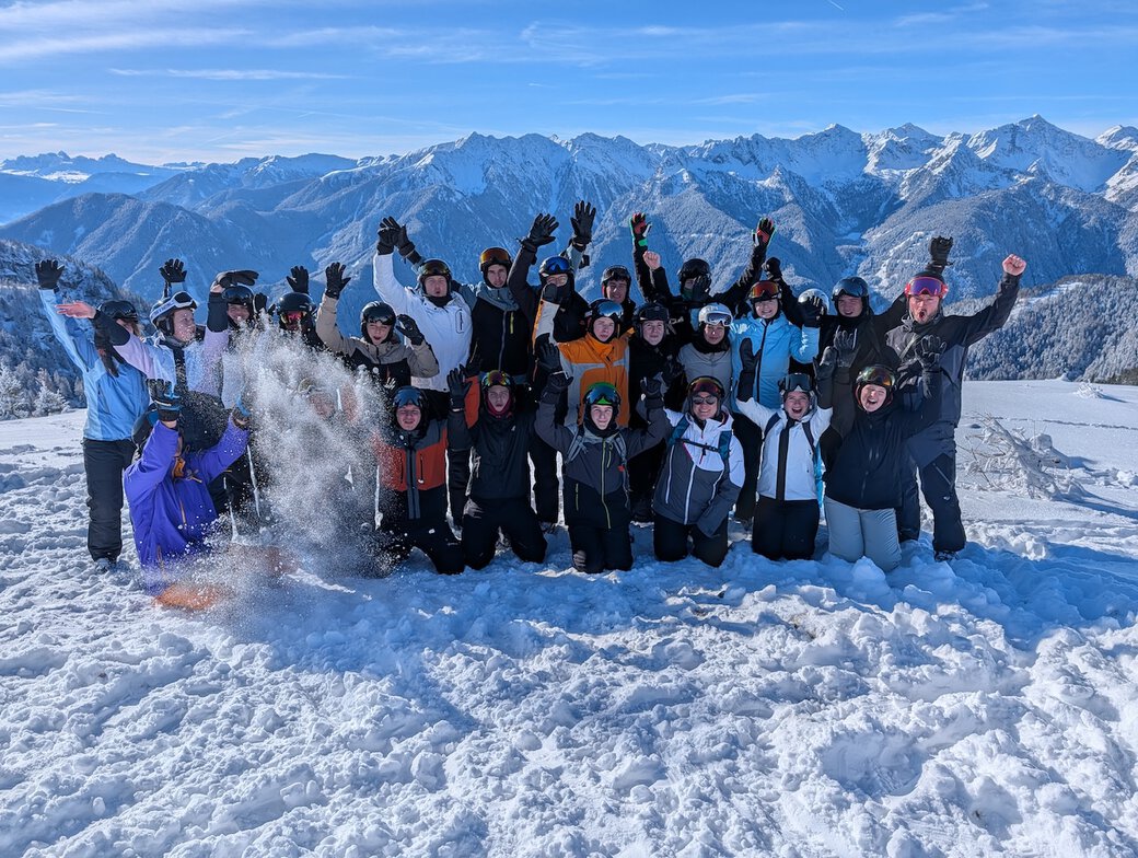 Am Morgen des 24.01.26 machten sich 22 Schülerinnen und Schüler gemeinsam mit vier Betreuern im Rahmen des Oberstufenkurses Sport auf den Weg nach Raas in Südtirol. Bei bester Laune startete die Gruppe in das winterliche Abenteuer. Nach rund elf Stunden Fahrt erreichten wir am Abend unser Ziel. Nach einem leckeren Abendbrot wurden die Zimmer bezogen – die Vorfreude und Spannung auf die kommenden Tage waren deutlich spürbar.