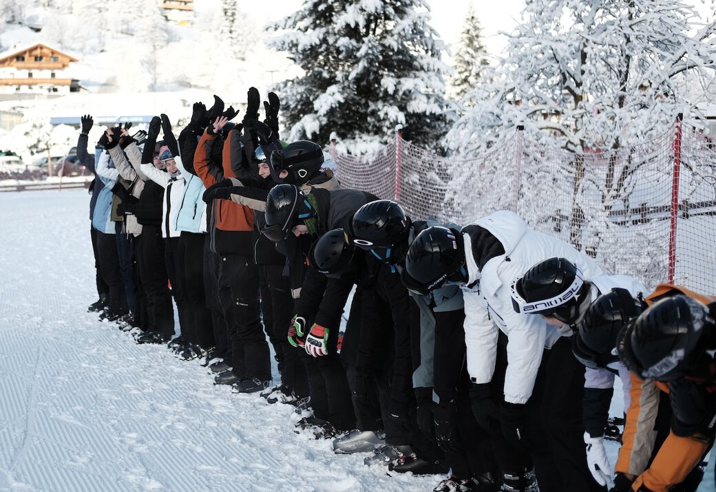 Nach dem Ausleihen des Materials am nächsten Tag ging es endlich auf die Piste. Für den Großteil der Schülerinnen und Schüler waren es die ersten Erfahrungen auf Ski, entsprechend groß war der Respekt. Doch perfekte Bedingungen sorgten für einen gelungenen Start: Neuschnee vom Vortag und eine traumhafte Winterlandschaft boten ein ideales Ambiente für unseren Skikurs.