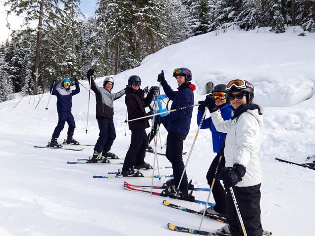 Neben denen waren unsere Sportlehrer und Skimeister in der Woche mit dabei, darunter Frau Baum, Herr Ixmeier, Herr Ernst, Herr Lisson und Frau Raabe. Ebenfalls am Start waren zwei ehemalige Schülerinnen, die immer für Bombenstimmung sorgten.