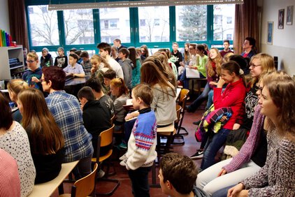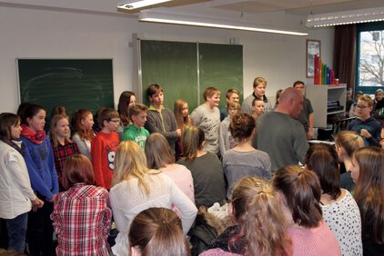 In diesem Jahr gibt es mal etwas ganz Neues: das tägliche Weihnachtssingen während der ersten Hofpause: gut besucht, viel gesungen, mal eine schöne Abwechslung und im nächsten Jahr gerne wieder!