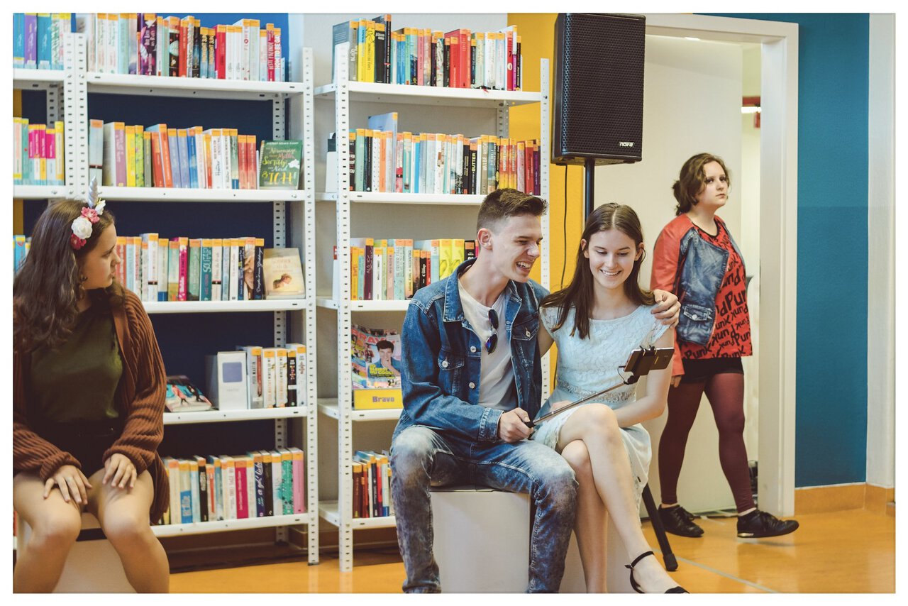 Am 18. Juni gastierte unsere Theater-AG in der Stadtbibliothek. In zwei Vorstellungen vor Schüler*innen der Sekundarschule "August Hermann Francke" sowie der KGS "Wilhelm von Humboldt" zeigten unsere Schauspieler*innen Höchstleistungen und brachten das Publikum zum Lachen. Vor allem "Herr Meier" durfte sich über Szenenapplaus freuen. Manch ein Charakter wurde wiedererkannt und manche Szene war "wie aus dem Leben". Wir freuen uns jetzt schon darauf, wenn sich unsere Schüler*innen auch im nächsten Jahr wieder außerhalb der eigenen Schule präsentieren können, denn jeder erfolgreiche Auftritt lässt sie ein Stück wachsen und gibt ihnen Selbstvertrauen sowie Selbstbewusstsein.
