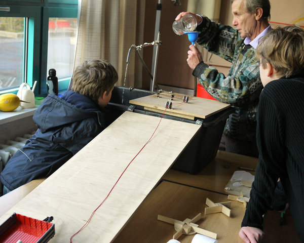 Ob er damit Recht hat, zeigt die Projektwoche dann vom 14.11. bis zum 18.11.2011. Aus 23 verschiedenen Projekten können die Schüler auswählen. Da gibt es beispielsweise den Musikinstrumentenbau, die Herstellung von Fachwerkhausgebinden, die Konstruktion von Papierbrücken und den Bau von Wasserrädern und Katapulten. Sie programmieren Lego-Roboter, konstruieren Holzflugzeuge und Drachen und bauen solarangetriebene Autos. Der Umgang mit GPS wird erkundet genau wie die Funktion der programmgesteuerten Schneidemaschine FiloCut. So wie es in der Industrie im Großen realisiert wird, vollziehen die Schüler die Herstellung von Zucker und Salz im Kleinen experimentell in den Laboren der Schule und des Salinemuseums nach. Selbst eine Radiosendung wird produziert und der Teich im Biotop der Schule erneuert.
