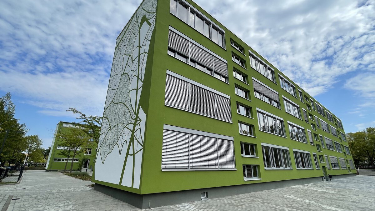 Unser Gymnasium befindet sich im Grünen und passt mit seiner neuen Farbe doch gut dazu!