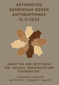 Am Dienstag, 12.11. finden am Gymnasium Südstadt anlässlich des 86. Jahrestags der Reichspogromnacht vom 09./10.11.1938 verschiedene Aktionen statt, die Zeichen gegen Antisemitismus und für…