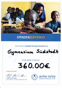 360,- € konnten die acht Schüler/innen der Projektgruppe aus der Klassenstufe 10 für ein Sanddammprojekt in Kenia akquirieren, welches im nächsten Jahr startet.